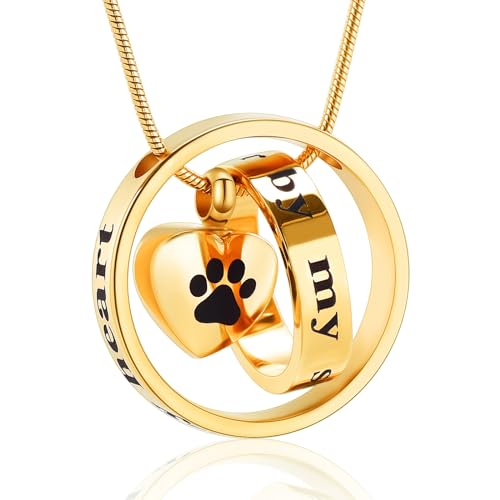 För alltid i mitt hjärta, inte längre vid min sida husdjur kremering smycken för aska av hund/katt funeral Keepsake urna halsband Paw Print Memorial halsband, Rostfritt stål, Ingen ädelsten