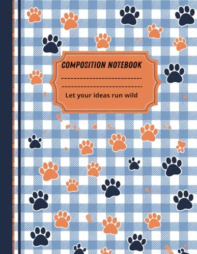 Composition Notebook Blue Gingham Paw Print, Fun Pet-Themed Wide Ruled Journal with Customizable | 8.5 x 11 in | 100 Pages: Cute Animal Paw Print ... Kids, Pet Lovers, Students, and Journaling