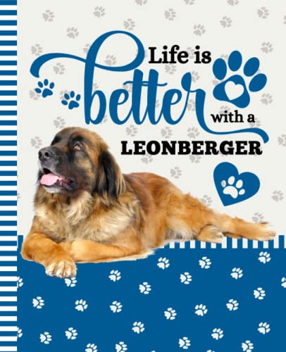 Life Is Better With A Leonberger: 7.5 x 9.25 / Dog Composition Notebook Wide Ruled / 108 Pages / Stationery Gift for Note Taking / Paw Print Pattern Funny Quote Cover
