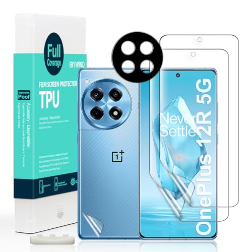 Ibywind 2pcs Screen Protector for OnePlus 12R 5G 6.78",Flexible TPU Film,with 1pc Camera Lens Cover,1pc Back Film[Easy to Install]