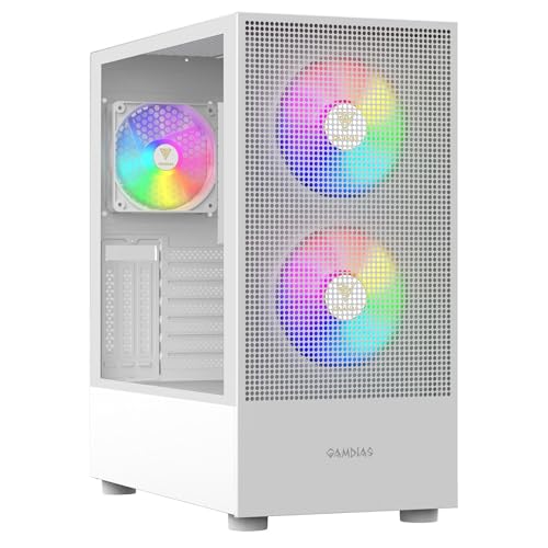 GAMDIAS TALOS PC-fodral, EATX Gaming Mid Tower, förinstallera 3 PWM ARGB-fläkt, sidopanel i härdat glas, luftflödesnät, stöder Dual 360 och Type-C, vit
