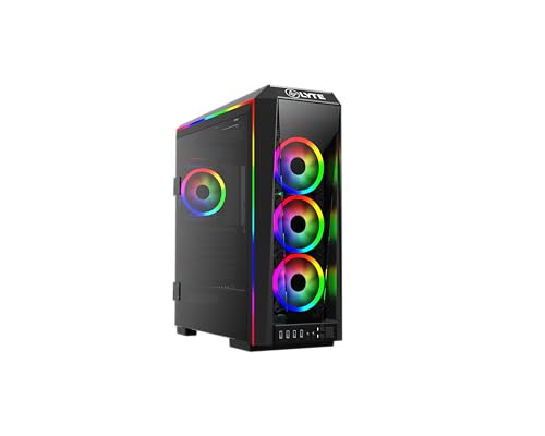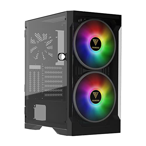 GAMDIAS ATHENA P1 ATX Mid Tower Gaming PC-fodral med härdat glas och utmärkt luftflödesdesign och 4 x 120 mm ARGB-fläktar, stöder topp och framsida 360 mm AIO och vertikal GPU-montering