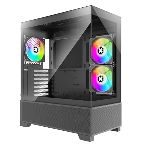 Xilence X613 XILENT BLADE II gaming PC-hölje, 3 x 120 mm ARGB-fläkt, ATX Midi Tower Case, Mesh Front Panel för bra Airflow och PWM/ARGB kontrollbräda, skruvlöst glassidepanel, svart