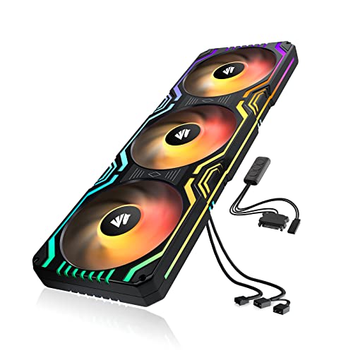AsiaHorse 3-i-1 PC-chassifläkt, 3 x 120 mm ARGB PC-fläkt med 56 adresserbara lysdioder, CPU-husfläkt med PWM Control, datorkylfläkt för moderkort Aura Sync, 800–1800 RPM, svart