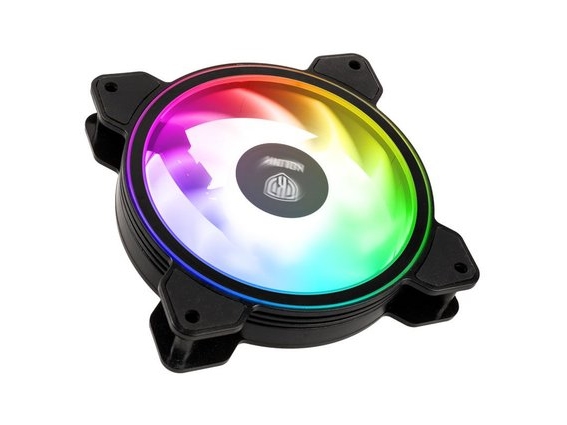 Nox Hummer S-FAN -NXHUMMERSFAN- 120 mm PC-fläkt, dubbel ARGB Rainbow LED-ring, antivibrationsgummikuddar, bra luftflöde, 3-stift, svart färg