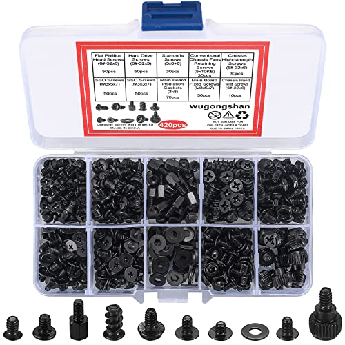 wugongshan 420 st. datorskruvar, stativset, PC-moderkortsskruvar, avståndshållare, tillbehör för personligt PC-chassi, moderbord, fläkt, hårddiskar, CD-ROM, skruvset