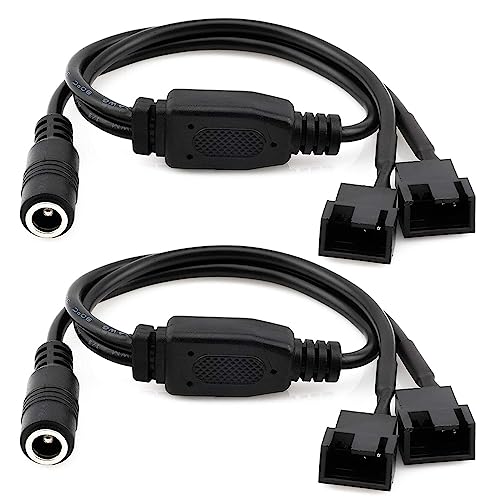 Gebildet 2PCS DC-strömförsörjningskontakt till Dual 3-Pin och 4-Pin PC Fläkt Strömadapterkabel, DC5521 till 4Pin Kabel