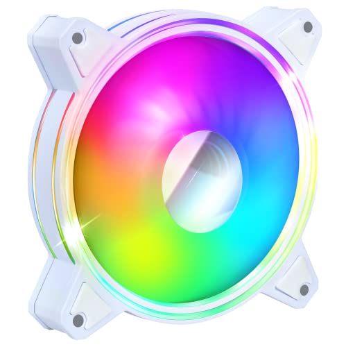 AsiaHorse 2-i-1 PC-chassifläkt, 2 x 120 mm ARGB PC-fläkt med 48 adresserbara lysdioder, CPU-husfläkt med PWM Control, datorkylfläkt för moderkort Aura Sync, 800–1800 RPM, vit