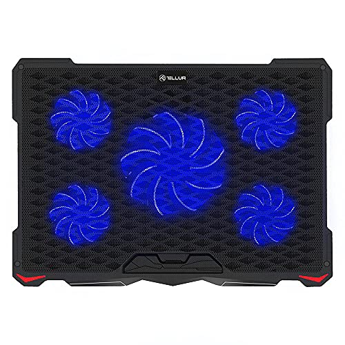 TELLUR Bärbar PC-kylbas, kylsystem för 11 tum – 17,3 tum bärbar dator, MacBook, 5 x 1500 varv/minut tysta fläktar, USB, bärbar PC-fläkt, justerbar höjd