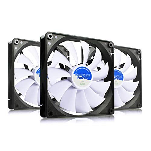 AABCOOLING Super Silent Fan 14 - Värdepaket - 3 st - Tyst och Effektiv 140mm Fodral Fläkt med 4 Vibrationsdämpare, 12V Fläkt, PC-Kylning, för PC-Fodral, 14cm Fläkt, Högt Luftflöde, Kylfläkt
