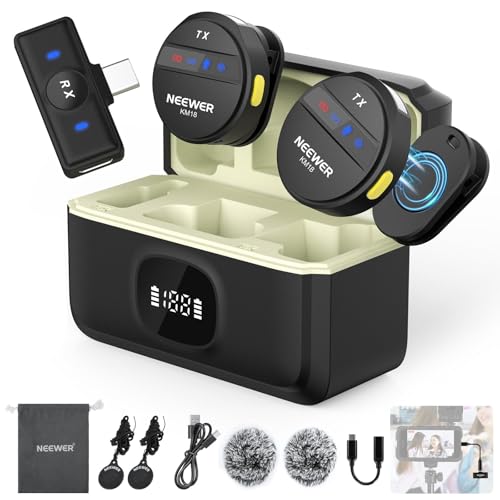 NEEWER Lavalier trådlös iPhone Mikrofon, Anti-Brus, Mini Lapel Mic med USB C/OTG/laddningsfodral Batteri 24h för Video Vlog Kompatibel med iPhone 16 15 Android Phone PC Laptop, KM18