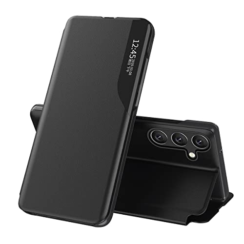 LEMAXELERS Kompatibel med Samsung Galaxy S25 telefonfodral smalt smart visningsfönster med ställ elegant flip läder hård PC-skydd stötsäkert skyddande skal för Samsung Galaxy S25 svart CC.