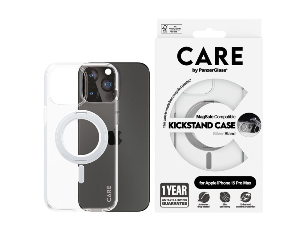 Care By Panzerglass - Baksidesskydd För Mobiltelefon - Med Fällbart Ställ - Magsafe-Kompatibilitet - Termoplastisk Polyuretan (Tpu), Polykarbonat (Pc) - Transparent, Silver - För Apple Iphone 15 Pro Max