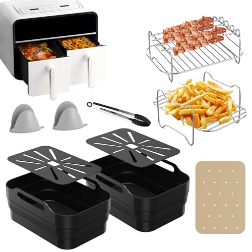 Ankway Ninja varmluftsfritös tillbehör, 2024 ny AF500EU dubbla luftfryer tillbehör för Ninja Foodi FlexDrawer 10,4 L, 10 PC 7-i-1 utlösad AF500EU liner & ställ