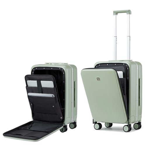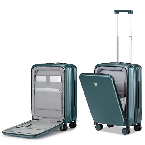 Hanke Uppgradering handbagage med främre laptopficka, 20 tum PC hårt fodral resväskor med spinner-hjul och TSA-lås, rullande bagage för affärsresor och kort resa, Svartaktig grön, Carry on 20-Inch,