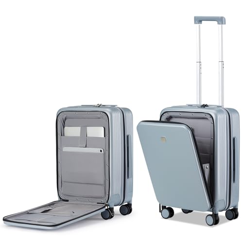 Hanke Uppgradering handbagage med främre laptopficka, 20 tum PC hårt fodral resväskor med spinner-hjul och TSA-lås, rullande bagage för affärsresor och kort resa, Grå, Carry on 20-Inch, Klassisk