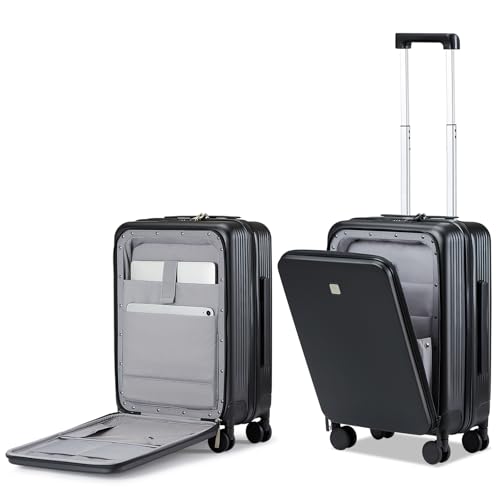 Hanke Uppgradering handbagage med främre laptopficka, 20 tum PC hårt fodral resväskor med spinner-hjul och TSA-lås, rullande bagage för affärsresor och kort resa, Kolsvart, Carry On 20-Inch-EXT,