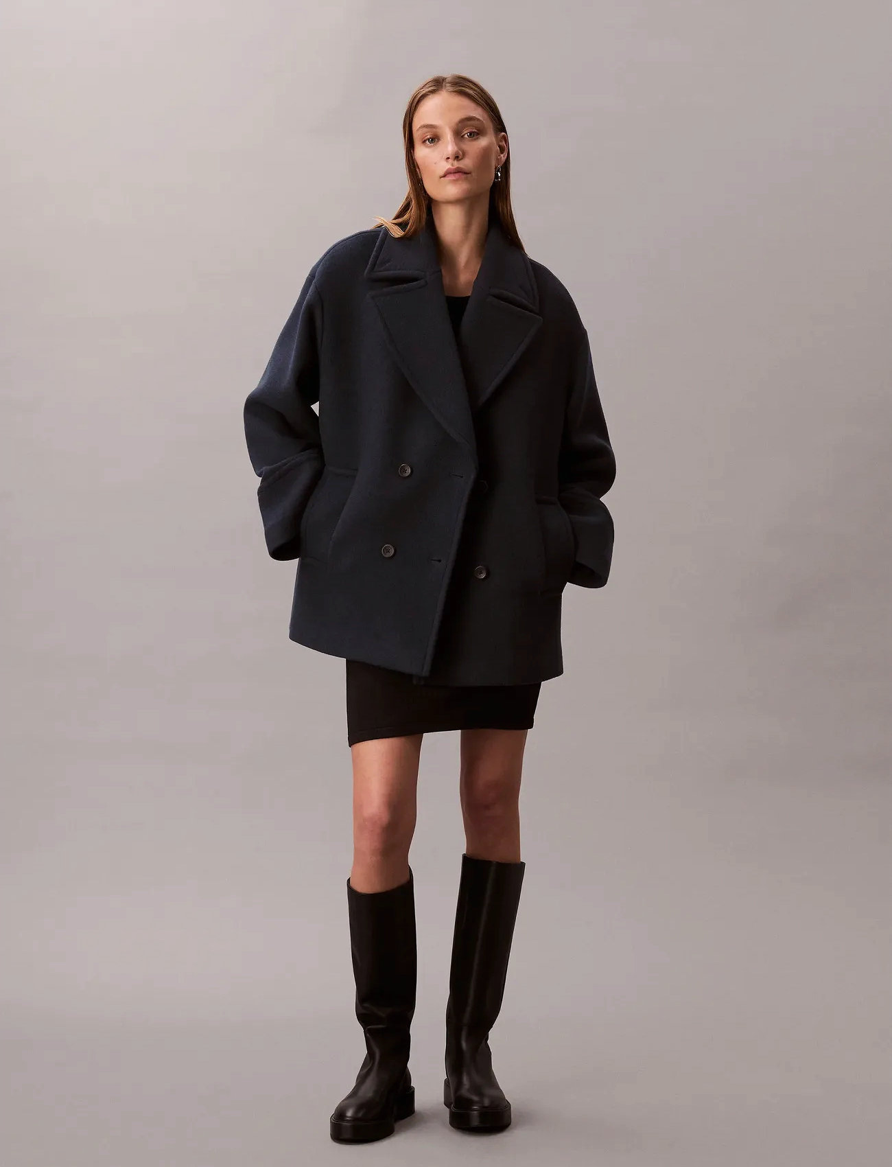 Calvin Klein Pea Coat - Solid - Navy - XS