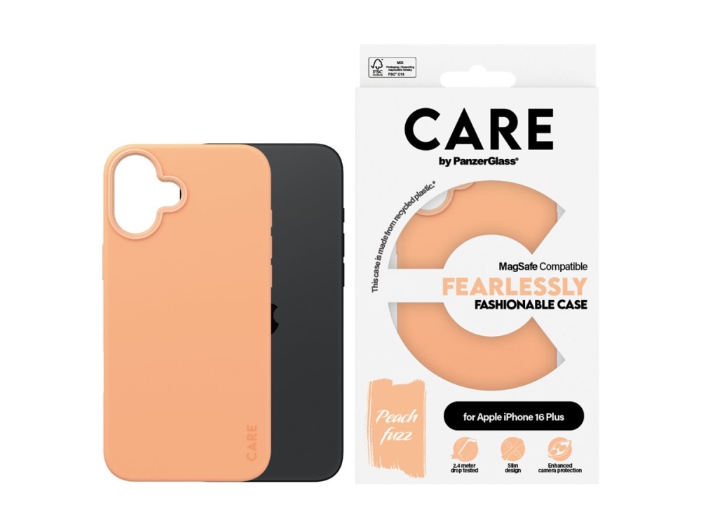 Care By Panzerglass - Baksidesskydd För Mobiltelefon - Magsafe-Kompatibilitet - Oleofobisk Beläggning, Termoplastisk Polyuretan (Tpu), Polykarbonat (Pc) - Peach Fuzz - För Apple Iphone 16 Plus