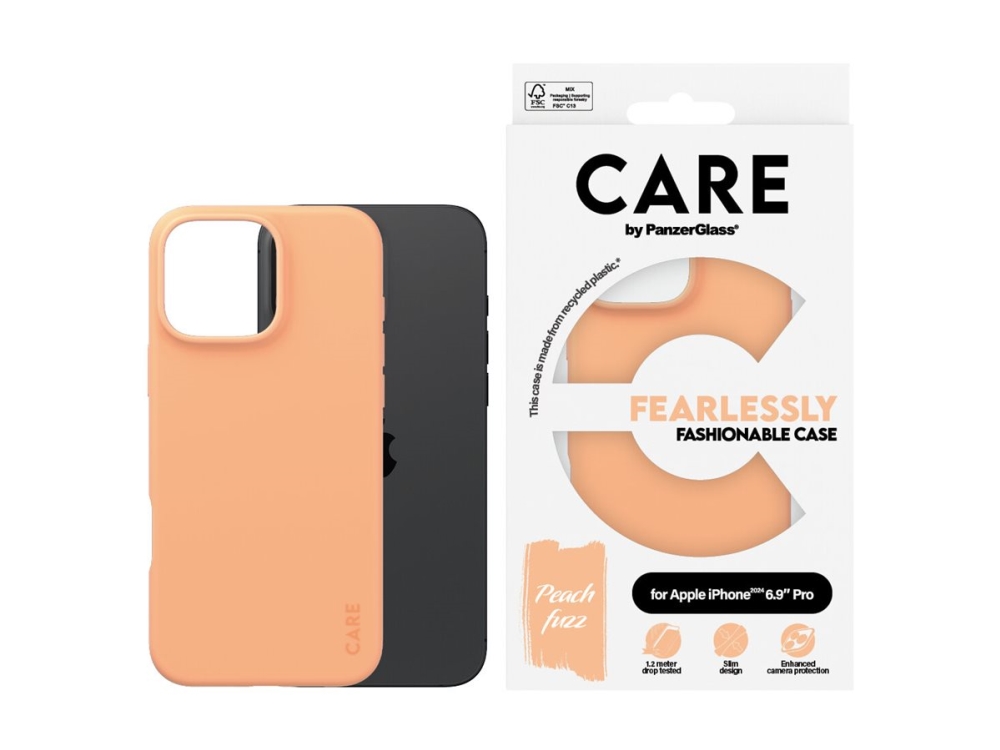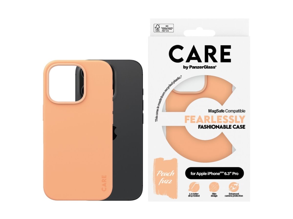 Care By Panzerglass - Baksidesskydd För Mobiltelefon - Magsafe-Kompatibilitet - Termoplastisk Polyuretan (Tpu), Oleofobisk Beläggning, Polykarbonat (Pc) - Peach Fuzz - För Apple Iphone 16 Pro
