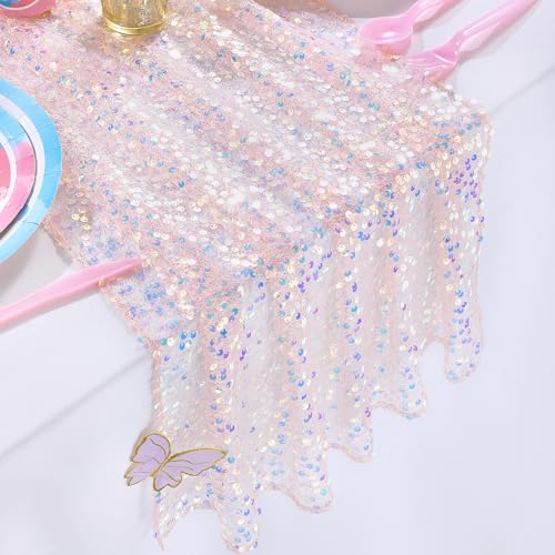 Skimrande löpare, 64 x 305 cm, för födelsedagsfest med havstema eller lilla sjöjungfru-tema, babyshower, persikofärgad (Peach Fuzz)