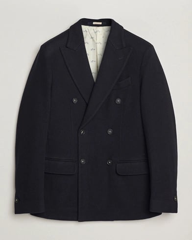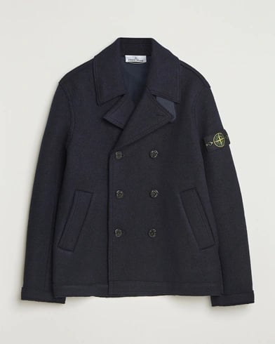 Stone Island Double Breasted Felted Wool Peacoat Navy