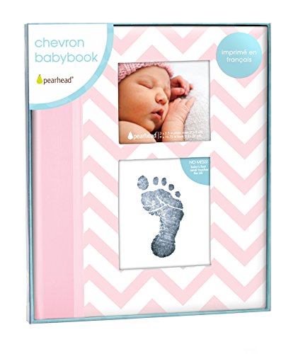 Pearhead First 5 Years Baby Minnesbok med medföljande Clean-Touch Baby Safe Bläckdyna för att skapa barnets handavtryck eller fotavtryck, Rosa Chevron