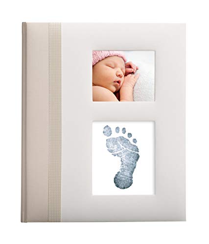 Pearhead Baby Memory Book med inkluderad Clean-Touch Pad för att skapa babyns hand eller foottryck, ny mammagåva, skiva Milestone Journal, UK engelsk version, elfenben