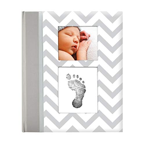 Pearhead First 5 Years Chevron Baby Minnesbok med medföljande Clean-Touch Baby Safe Ink Pad för att skapa barnets handavtryck eller fotavtryck, Minnessak Milstolpe-journal, brittisk engelsk version,