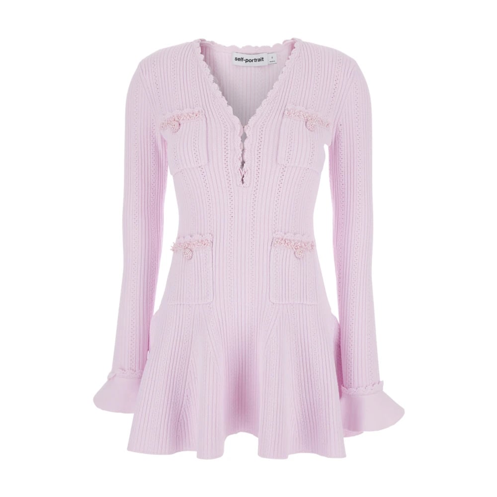 Self Portrait, Klänningar , Dam, M, Pearl Trim Knit Mini Dress