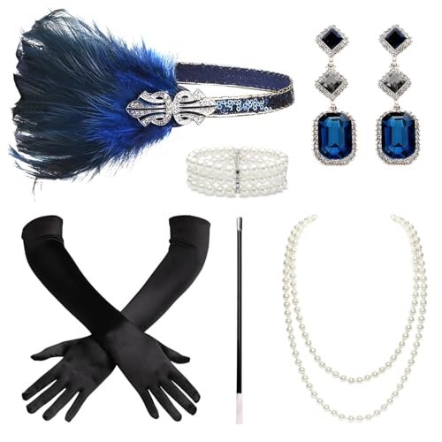 BABEYOND 1920s Flapper Accessories Gatsby Costume Accessories Set 20s Flapper Headband Pearl Necklace Gloves Plastic Holder
