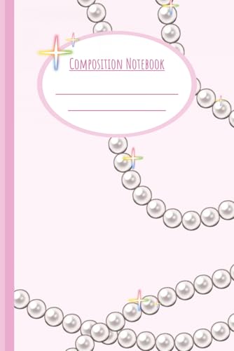 Pink Pearl Sparkles Composition Notebook — 6" x 9", 120 Pages: Pastel pink journal with pearl necklace stripes and colourful sparkle starts