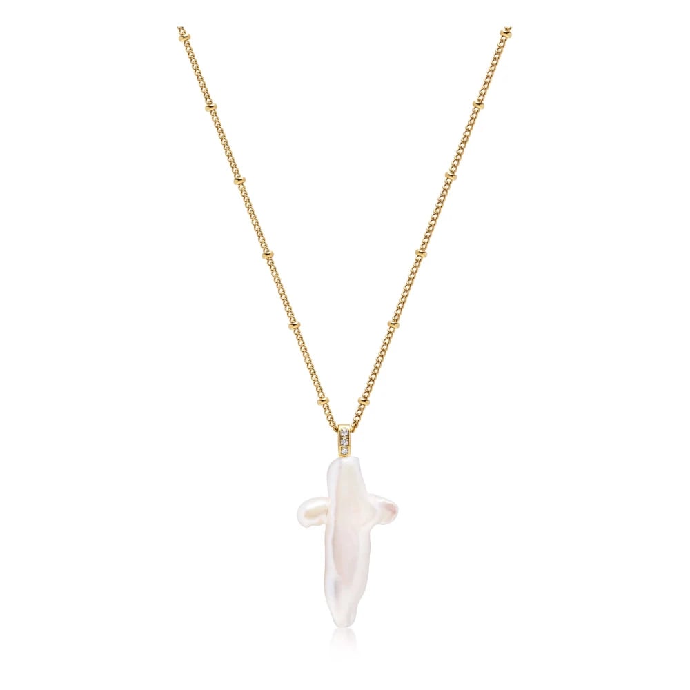 Nialaya, Accessoarer , Dam, ONE Size, Pearl Cross Chain Necklace