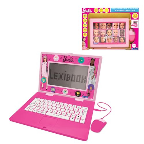 Lexibook, Barbie, bärbar tvåspråkig och pedagogisk spanska/engelska, barnleksak, 170 aktiviteter för lärande, spel och musik, stor skärm, rosa, JC599BBi2