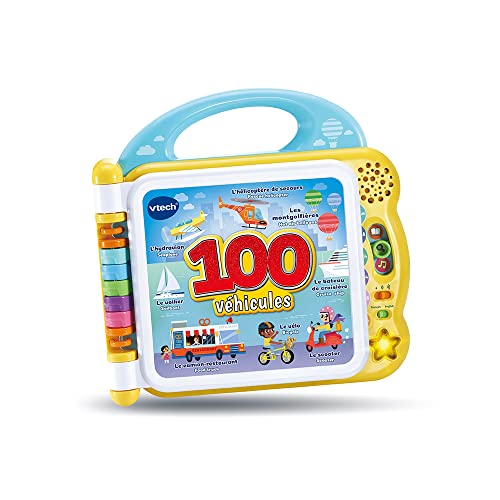VTech - My Bilingue Imagier, Talking Imagier My 100 fordon, ljudbok, 12 illustrerade och interaktiva sidor, pedagogisk leksak, barngåva från 18 månader - innehåll på franska och engelska
