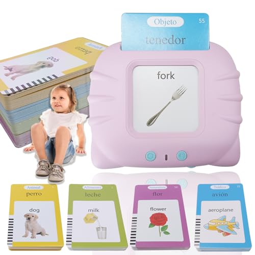 Spanska engelska talande flashkort, tvåspråkigt talande flash-kort, pedagogisk leksak för småbarn 2–5 år, 112 ark 224 ord, hörbara pedagogiska leksaker, för pojkar flickor
