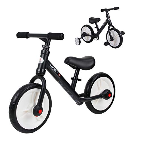 HOMCOM Barncykel 2 i 1 hjul och pedaler avtagbara hjul 12 tum höjd justerbar sadel för barn från 2 till 5 år, svart stål