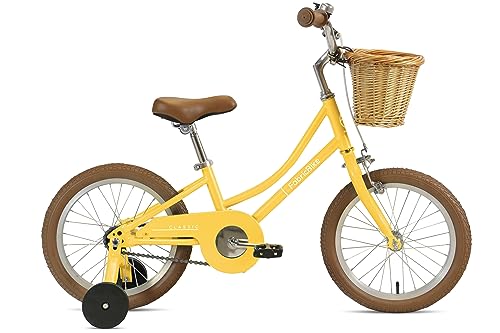 FabricBike Barncykel med pedaler för pojkar och flickor, avtagbara träningsrullar, bromsar, hjul 12 och 16 tum, 4 färger (klassisk honung, 16 tum: 3–7 år)
