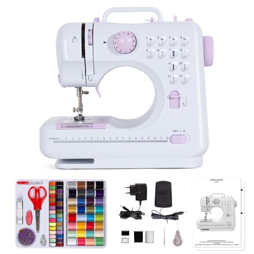 Leogreen Elektrisk symaskin, nybörjarsymaskin med 12 syprogram, med sykit och pedaler, för nybörjare föräldrar och barn (lila)