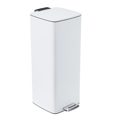 30 liters Sophink med lock, Stor Soptunna med pedal, mjuk stängning köksavfallskorg, Metall Pedalhink för kök, badrum, kontor, Vit