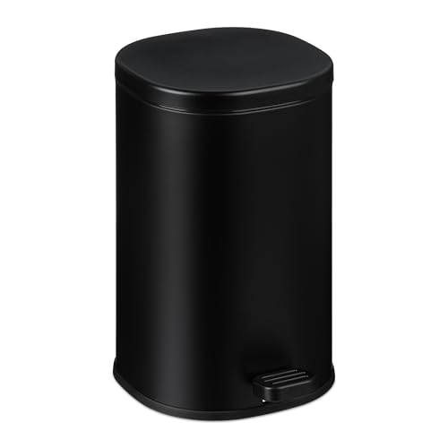Relaxdays Pedalhink badrum 5 l mjuk stängning med inre hinkar i metall matt utseende, papperskorg toalett, svart