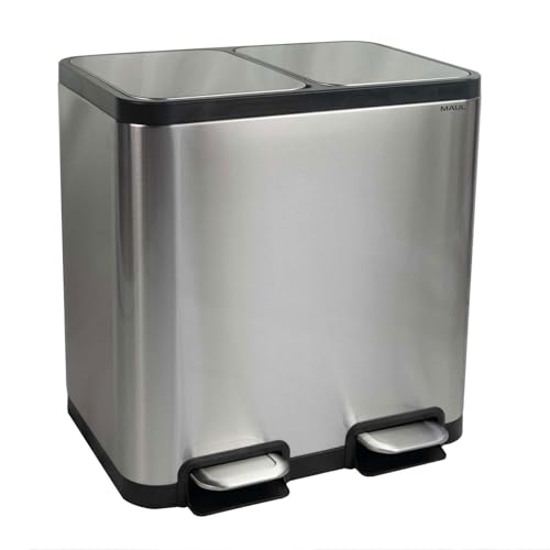 MAUL Pedalhink med lock 40 l MAULcycle | papperskorg av rostfritt stål med två fack | mjukt stängningslock med luktfilter | soptunna för kontor, badrum, kök | 37,8 x 46 x 49,2 cm | silver