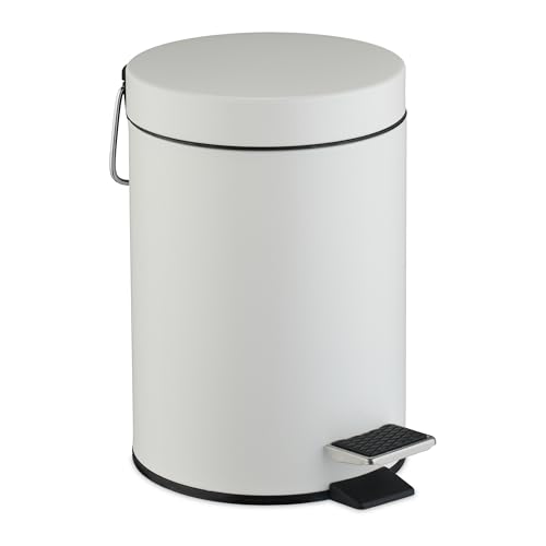 Relaxdays Papperskorg 3 l badrum matt modern avtagbar innerhink WC pedalhink med lock vit