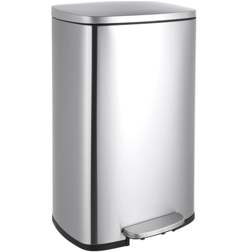 50 liters Sophink med lock, Stor Soptunna med pedal, mjuk stängning köksavfallskorg, Metall Pedalhink för kök, badrum, kontor, Silver