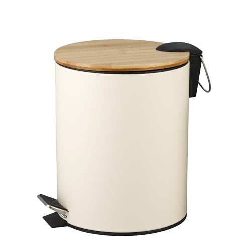 Amig - Pedalhink för badrum 3 liter mod. Naturline - Vit och bambu - Hygienisk handsfree-öppning - Ø16,8 x 23 cm - Lackerat rostfritt stål - Rund papperskorg med lufttätt lock