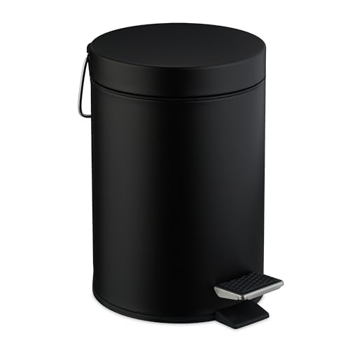 Relaxdays Papperskorg 3 l badrum matt modern avtagbar innerhink WC pedalhink med lock svart