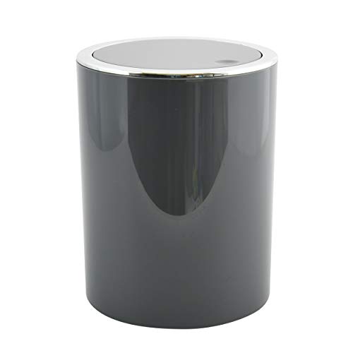 MSV Bad Serie Aspen Design Sminkhink Badrum Pedalhink Svänglockshink Soptunna med svänglock 6 liter (Ø x H): ca 18,5 x 26 cm grå