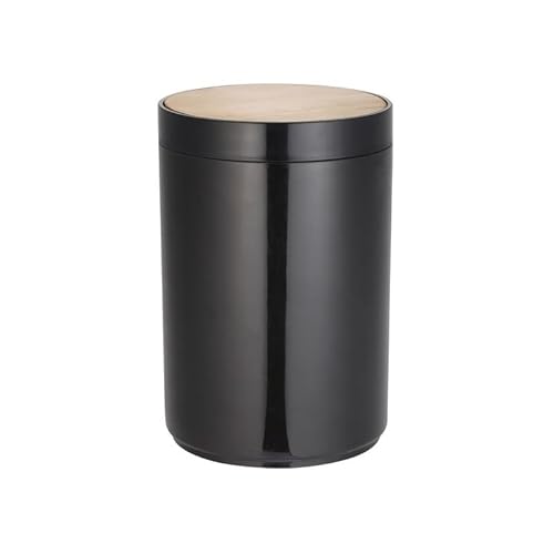 Amig - Pedalhink för badrum 5 liter mod. Naturline - svart och bambu - hygienisk handsfree-öppning - Ø20 x 26 cm - lackerat rostfritt stål - rund papperskorg med lufttätt lock