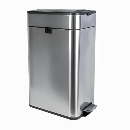 Premier Housewares Kökskorg badrum soptunna återvinningslådor rostfritt stål pedalhink kökskorg återvinning och avfallsskräpkorg 27 x 20,3 x 26 cm