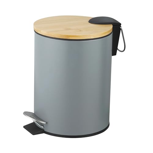 Amig - Pedalhink för badrum 3 L Mod. Naturline - Färg: Grå och bambu - Hygienisk öppning utan händer - Ø16,8 x 23 cm - Lackerat rostfritt stål - Rund papperskorg med lufttät lock